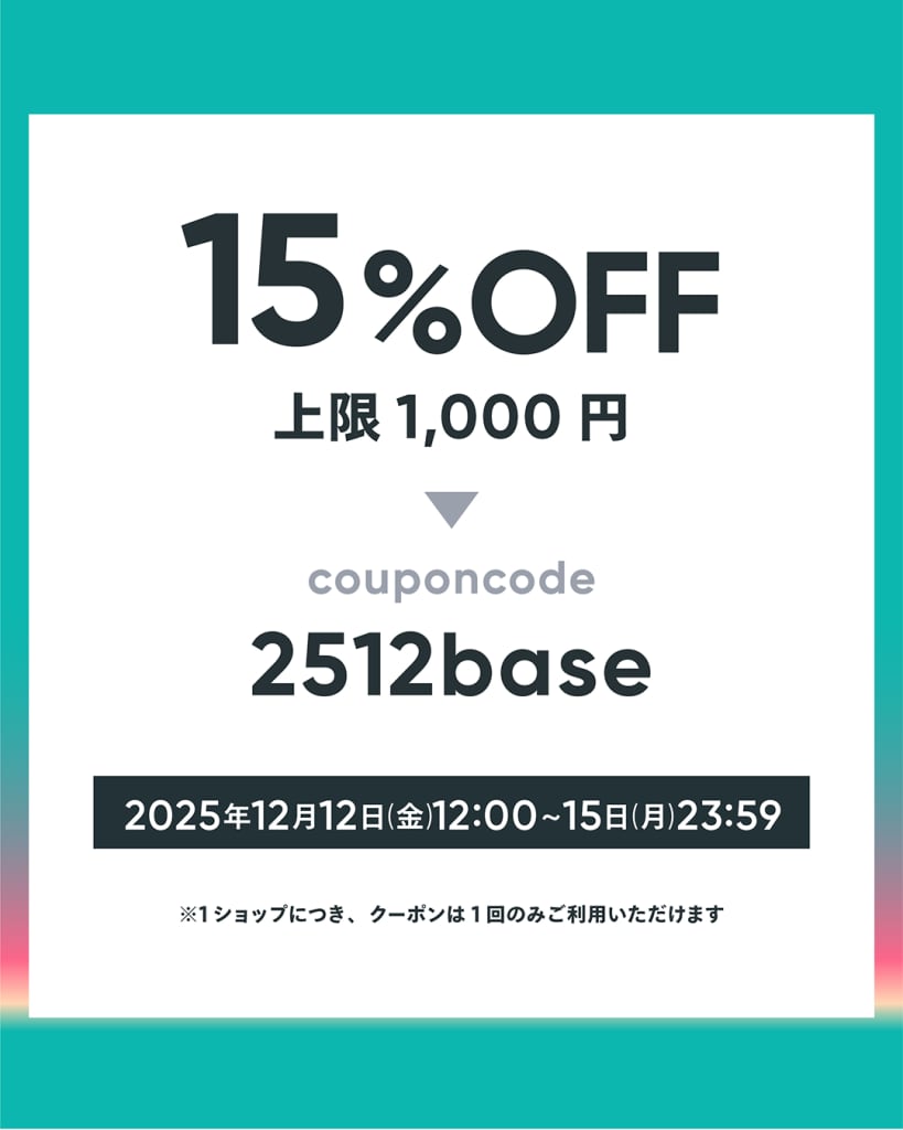 ・15%OFFクーポン(上限1,000円) クーポンコード:2512base